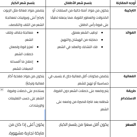 • الشعر المتساقط: يفضل اختيار منتجات تقوية، مثل المواد التي تحتوي على البيوتين والكيراتين.